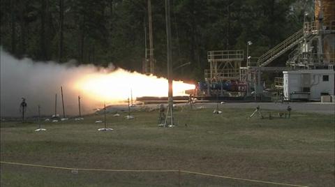 It was three-two-one to brilliant fire as NASA's Marshall Space Flight Center tested a small solid rocket motor designed to