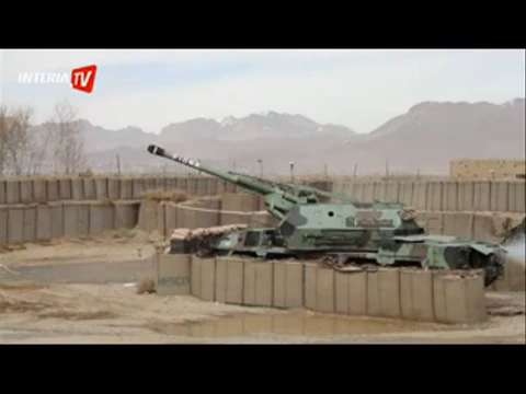 Polish 152mm SpGH DANA protecting polish military base in Afghanistan.