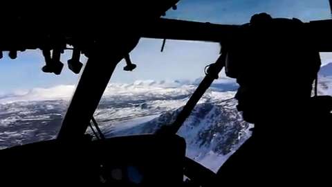 "Flying in the artic. We lift off a mountain at 6000ft pilot dumps collective to create negative G."