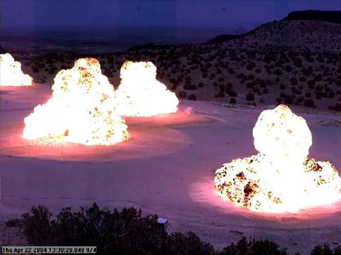 Test of multiple explosions at the Energetic Materials Testing Center at New Mexico Tech.