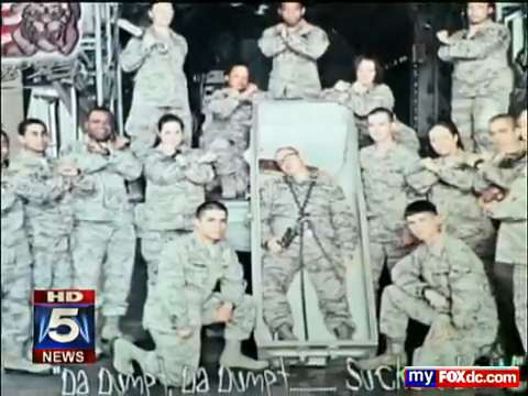 The Air Force said Thursday it was investigating a photograph of a group of airmen posing with another airman pretending