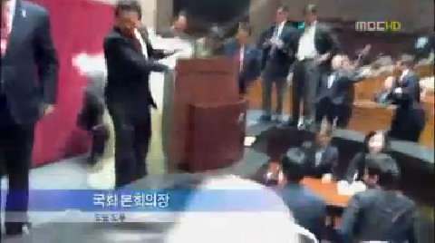South Korea's ruling party forced a long-stalled free trade deal with the United States through parliament Tuesday, enraging opposition lawmakers
