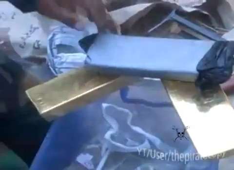 November 1, 2011 -- Libyan Rebels find gold bars and cash buried in Gaddaffi's cousin's garden in Sirte, Libya.
