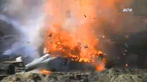 Ammunition cooks off on a crashed Mi-26 super heavy lift helicopter in Dagestan (republic of Russia). The helicopter is destroyed