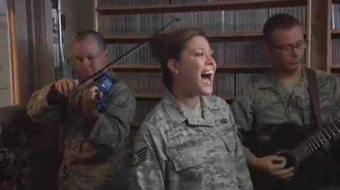 AFCENT band Sidewinder performing on Bagram at the MWR clamshell and in AFN Freedom Radio studio. Clip of band during