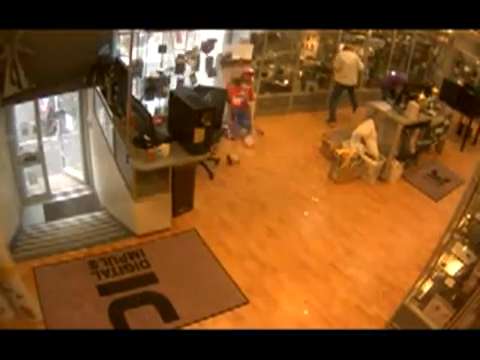 A store camera, located a block from the bomb, captures the explosion.