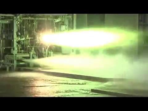 A 3-D printed injector roars to life on a test stand at NASA's Marshall Space Flight Center in Huntsville, Ala