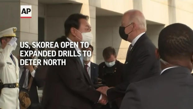 U.S. President Joe Biden and South Korean President Yoon Suk Yeol said after meeting Saturday that they will consider expanded joint military exercises to deter the nuclear threat from North Korea at a time when there's little hope of real diplomacy on the matter. (May 21) AP